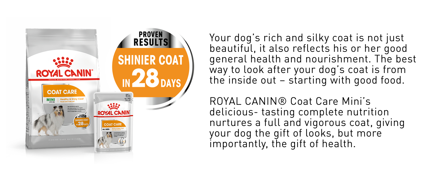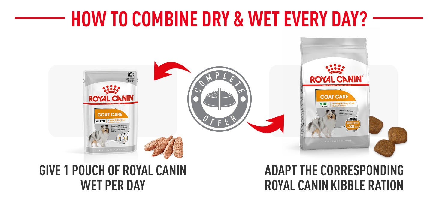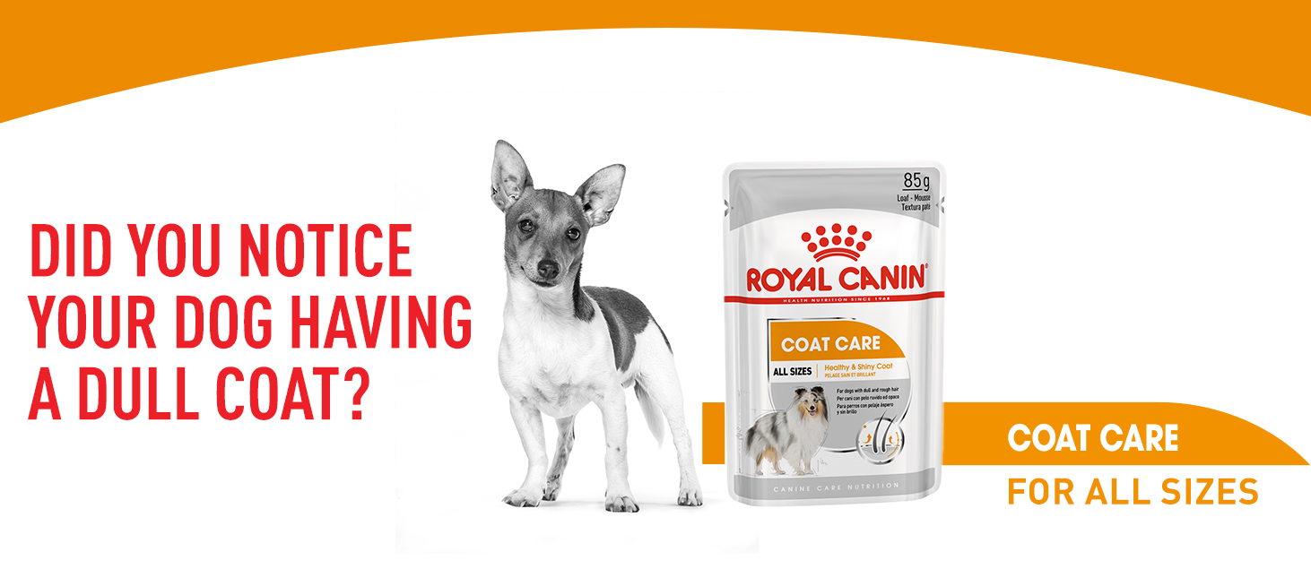 ROYAL CANIN® Coat Care Loaf wet food is formulated exclusively to support your dog’s skin and coat health. Suitable for adult dogs of all shapes, sizes and breeds, this nutritionally complete formula is specially tailored to help soothe and nourish your dog’s sensitive skin while also enriching the vitality of your dog’s coat.